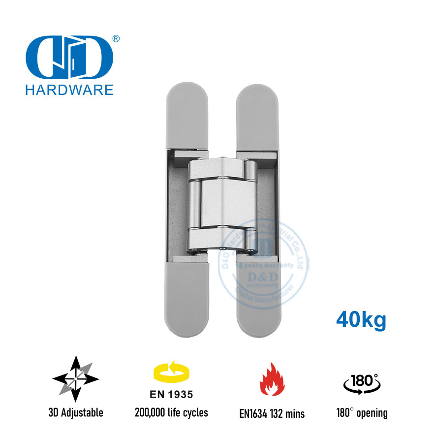 Conçue spécifiquement pour les immeubles de bureaux modernes, la charnière de porte invisible 3D offre une capacité de charge exceptionnelle, une durée de vie prolongée et de multiples certifications de sécurité, ce qui en fait le choix idéal pour les systèmes de contrôle de porte d'espace commercial haut de gamme. Ses principaux paramètres et avantages fonctionnels sont les suivants :
