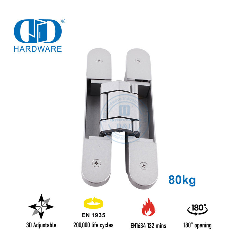 Une charnière entièrement dissimulée à 180° conçue spécifiquement pour les portes coupe-feu, dotée d'une capacité de charge de 80 kg, de trois certifications reconnues internationalement et d'une finition métallique gris argenté. Cette solution offre à la fois des performances de sécurité et un attrait visuel pour les systèmes de portes coupe-feu dans les bâtiments commerciaux, les espaces publics et les résidences haut de gamme. Vous trouverez ci-dessous une analyse approfondie de la valeur fondamentale du produit en termes de performances, de sécurité, de matériaux et de compatibilité de conception :