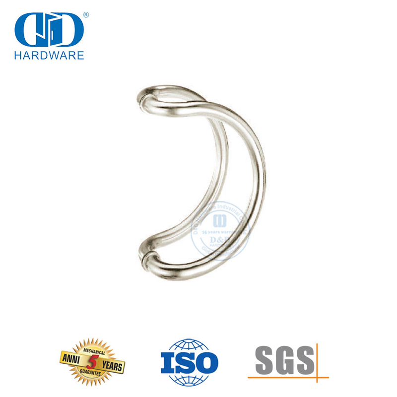 Améliorez votre porte en verre avec la poignée de traction dos à dos en acier inoxydable argenté de type D pour quincaillerie de porte principale en verre. Cette poignée améliore non seulement l'attrait esthétique de votre porte, mais offre également une option robuste et fiable pour l'ouverture et la fermeture. Son design moderne et sa finition argentée en font un choix polyvalent pour différents styles d'intérieur.
