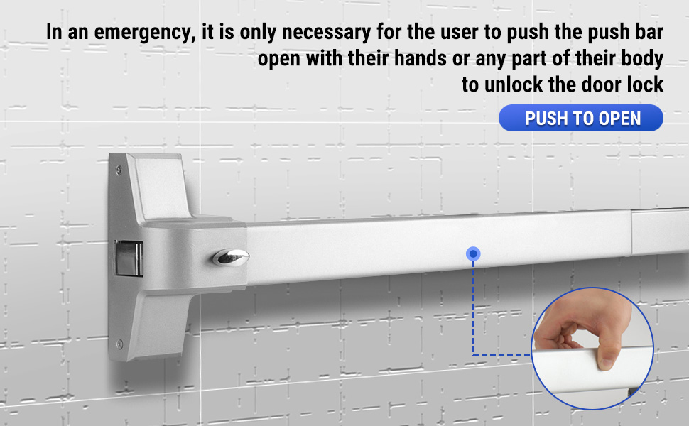 Une barre de panique est une barre métallique horizontale à ressort installée à l'intérieur d'une porte de sortie. Lorsque la barre est poussée, elle rétracte un mécanisme de verrouillage et ouvre la porte, permettant une sortie rapide et sans effort. Il est spécifiquement conçu pour fonctionner dans des situations d'urgence, offrant un moyen simple et efficace pour les gens de quitter un bâtiment sans tâtonner les serrures ou les clés.